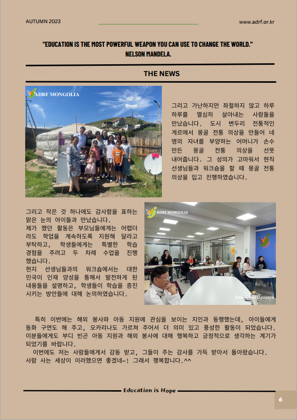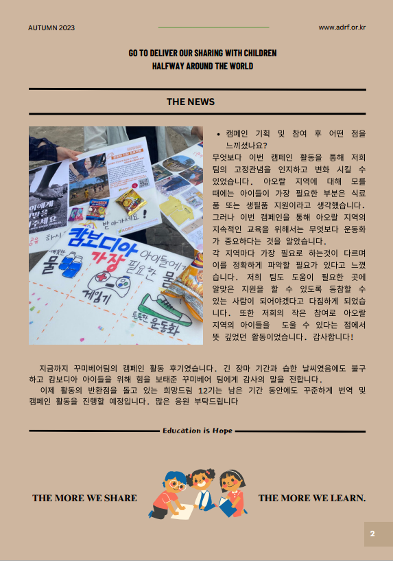 ADRF 2023년 가을호 소식지가 발행되었습니다.