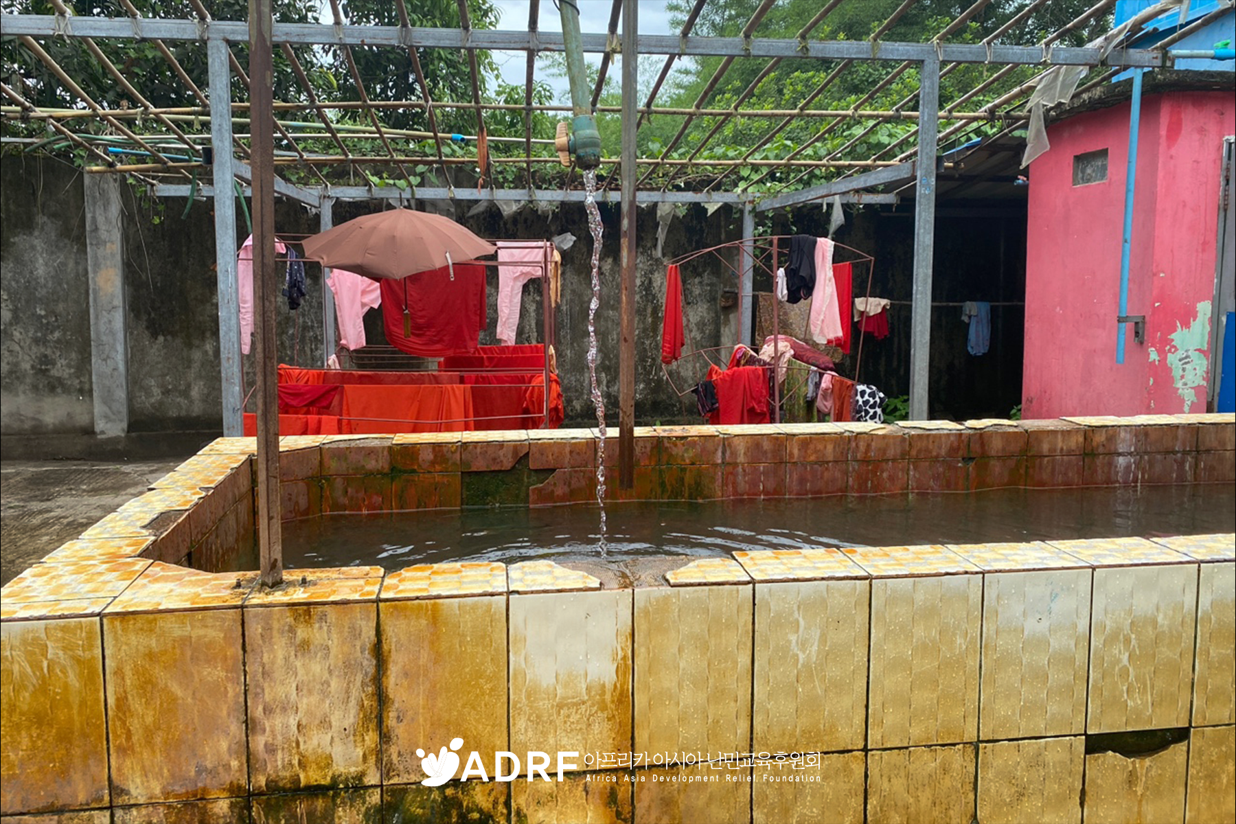학교는 우물에 물을 저장해서 식수와 빨래 등 생활용수로 사용합니다. 오래된 우물은 바닥과 벽에 붙은 타일이 떨어져 나가고, 시멘트가 부식되어서 곳곳에 이끼와 물때로 덮여가고 있습니다. 우물에서 떨어진 찌꺼기들이 배수구를 막기도 하고, 번지는 물때와 이끼는 아이들의 안전을 위협하고 있습니다. 이 상태가 지속되면 피부 질환이나 전염병을 옮기는 모기가 대량으로 번식할 우려도 있습니다.