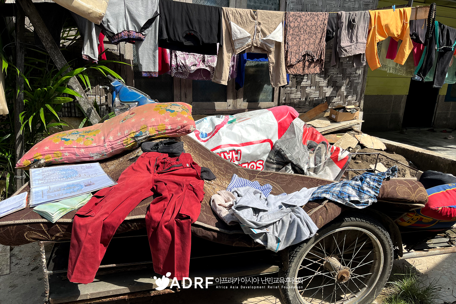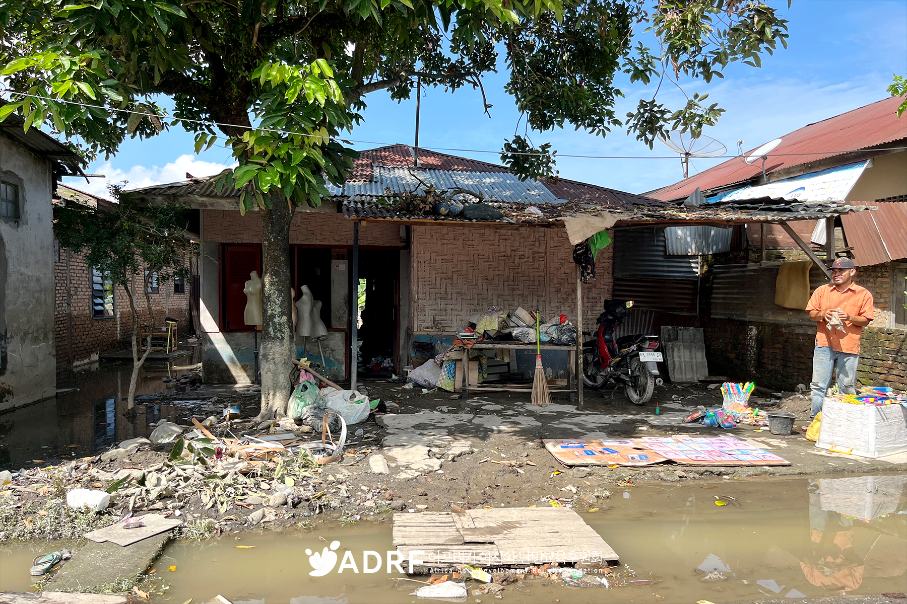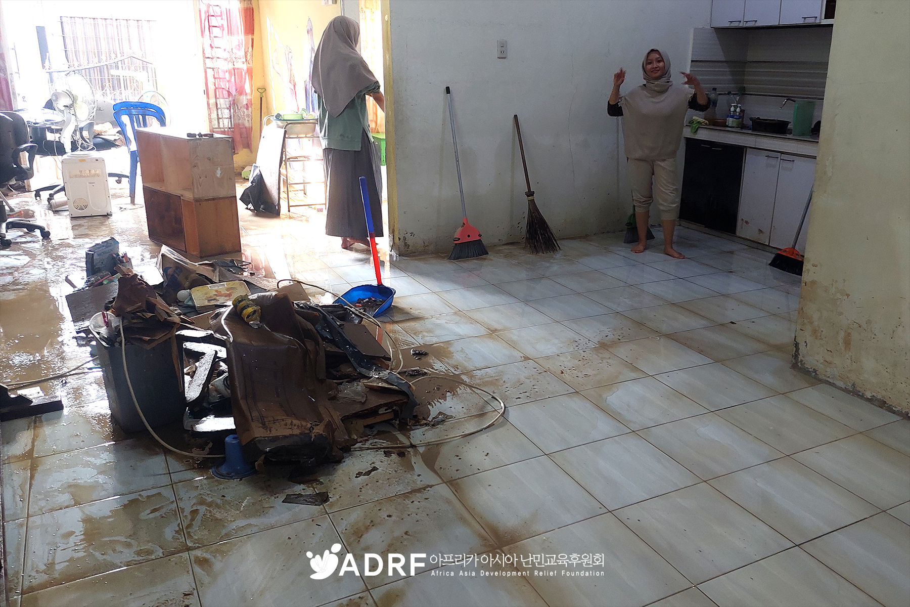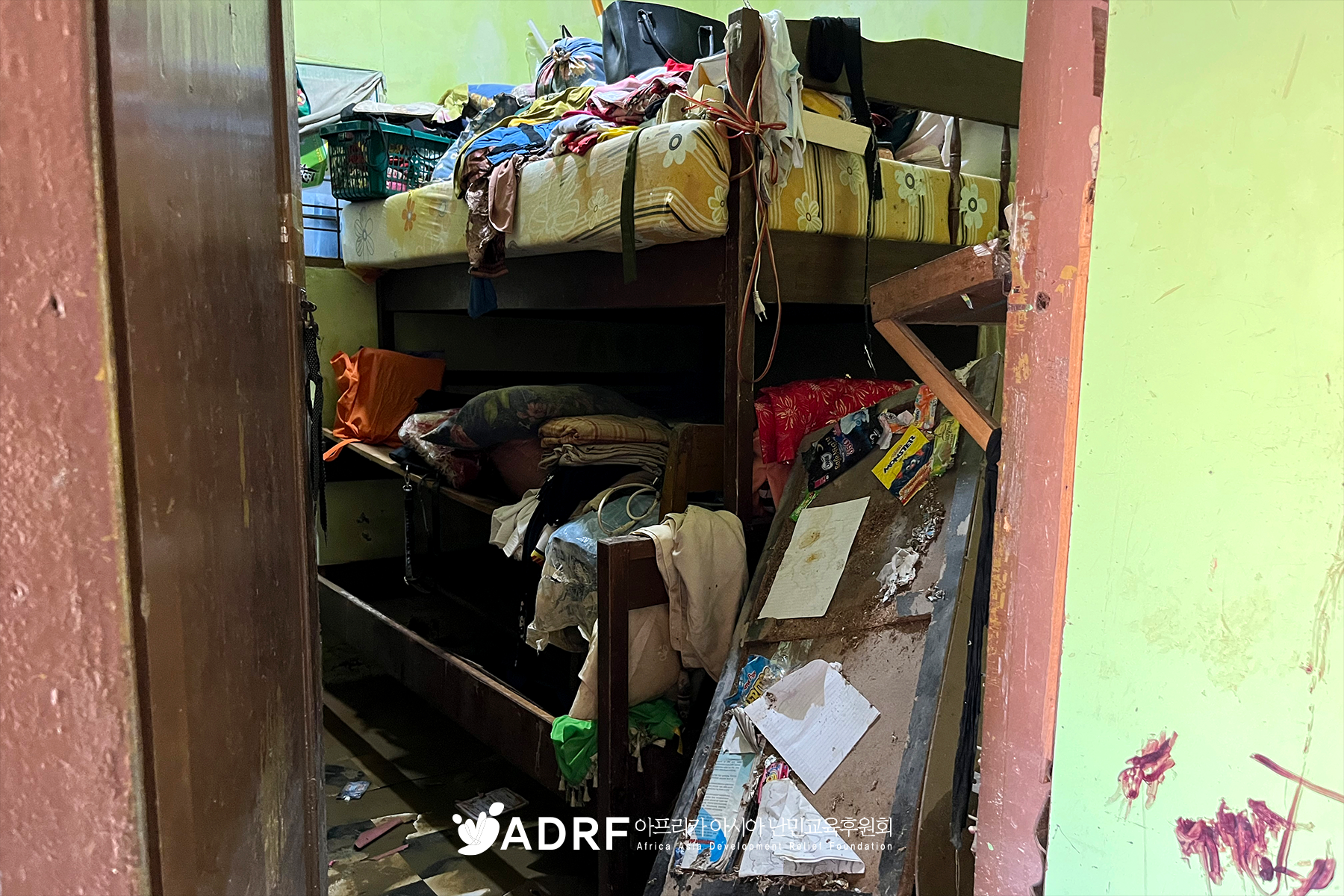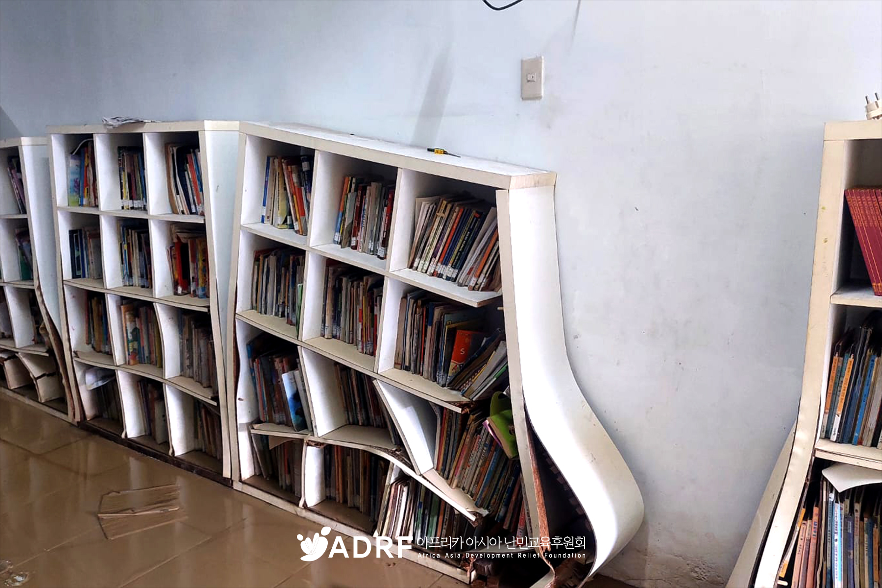 ADRF가 운영하는 '희망 교실'은 아이들이 한국에서 보내 준 동화책을 읽고, 공부도 하면서 더 나은 삶을 꿈꾸던 희망의 장소입니다. 그러나 홍수가 휩쓸고 간 교실에는 물에 젖어 망가진 책장과 책들만 남았습니다. 봉사자들이 청소하고 있지만, 아이들이 다시 배움을 이어갈 수 있도록 새로운 환경을 마련하는 것이 시급한 숙제입니다.